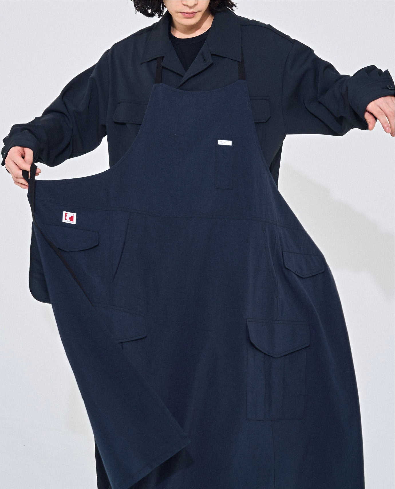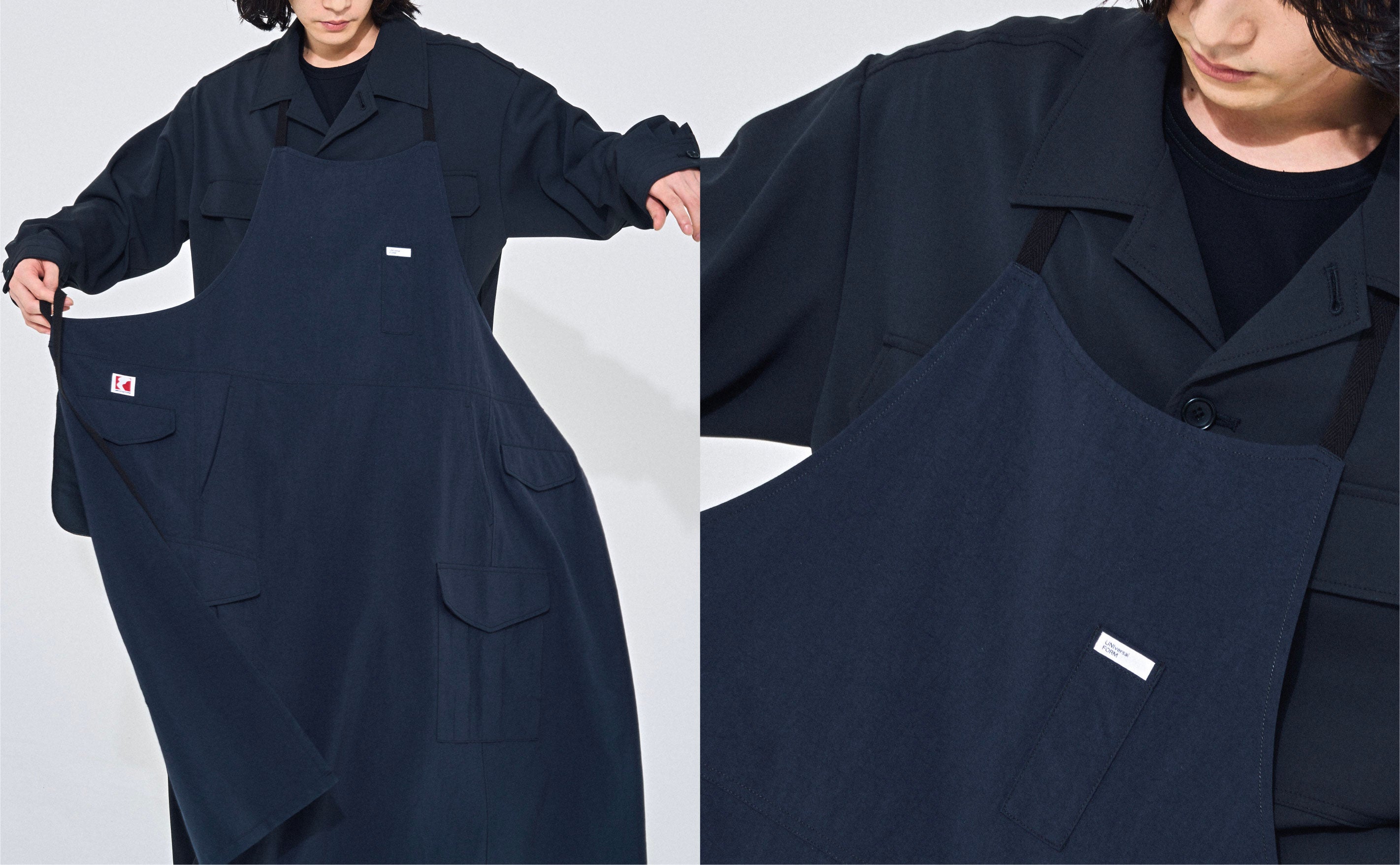 通常のエプロンは平面的なパターンですが、ウエスト切り替えを立体的にする事で、ポケットに手が入れやすくなっています。