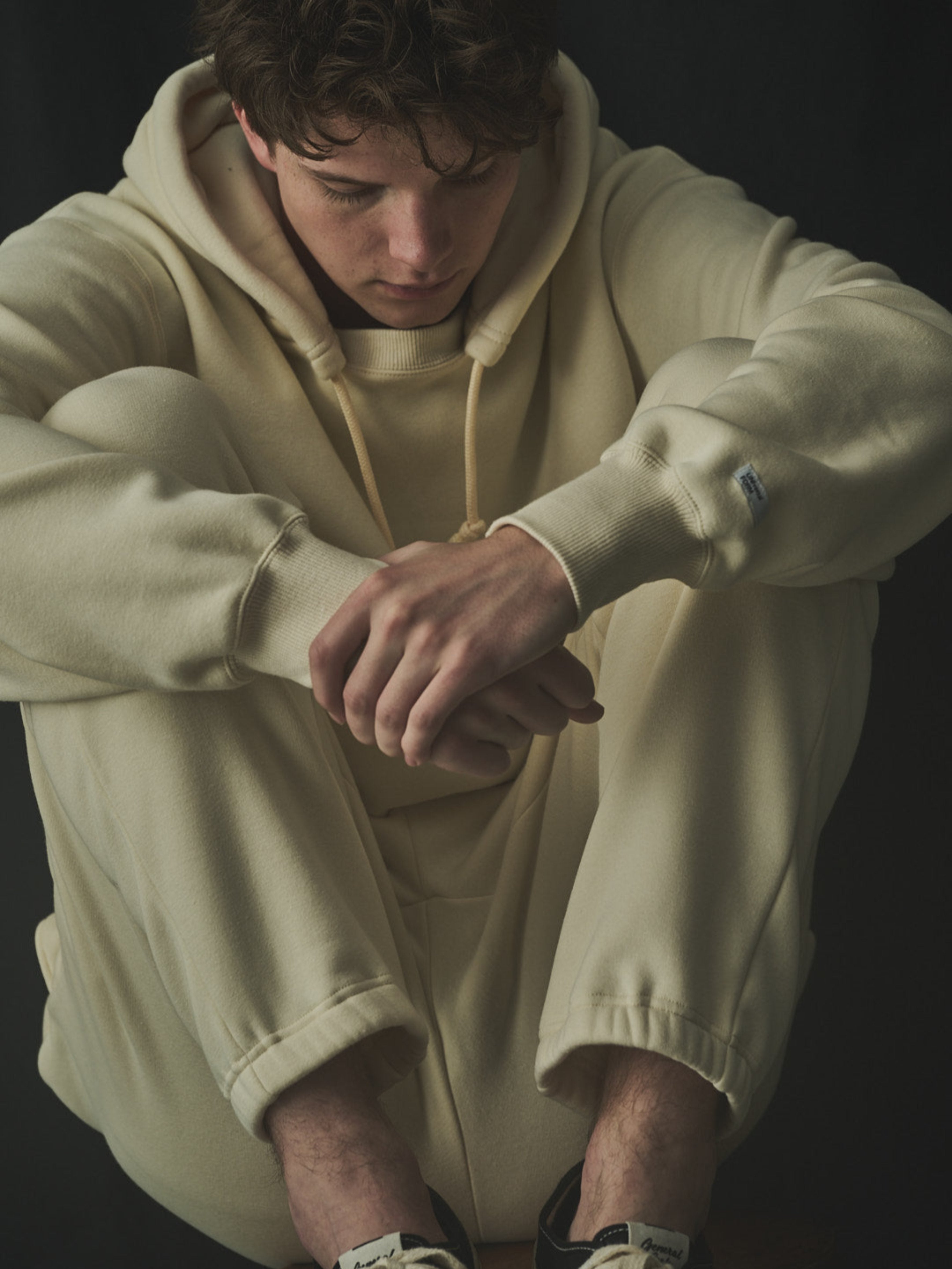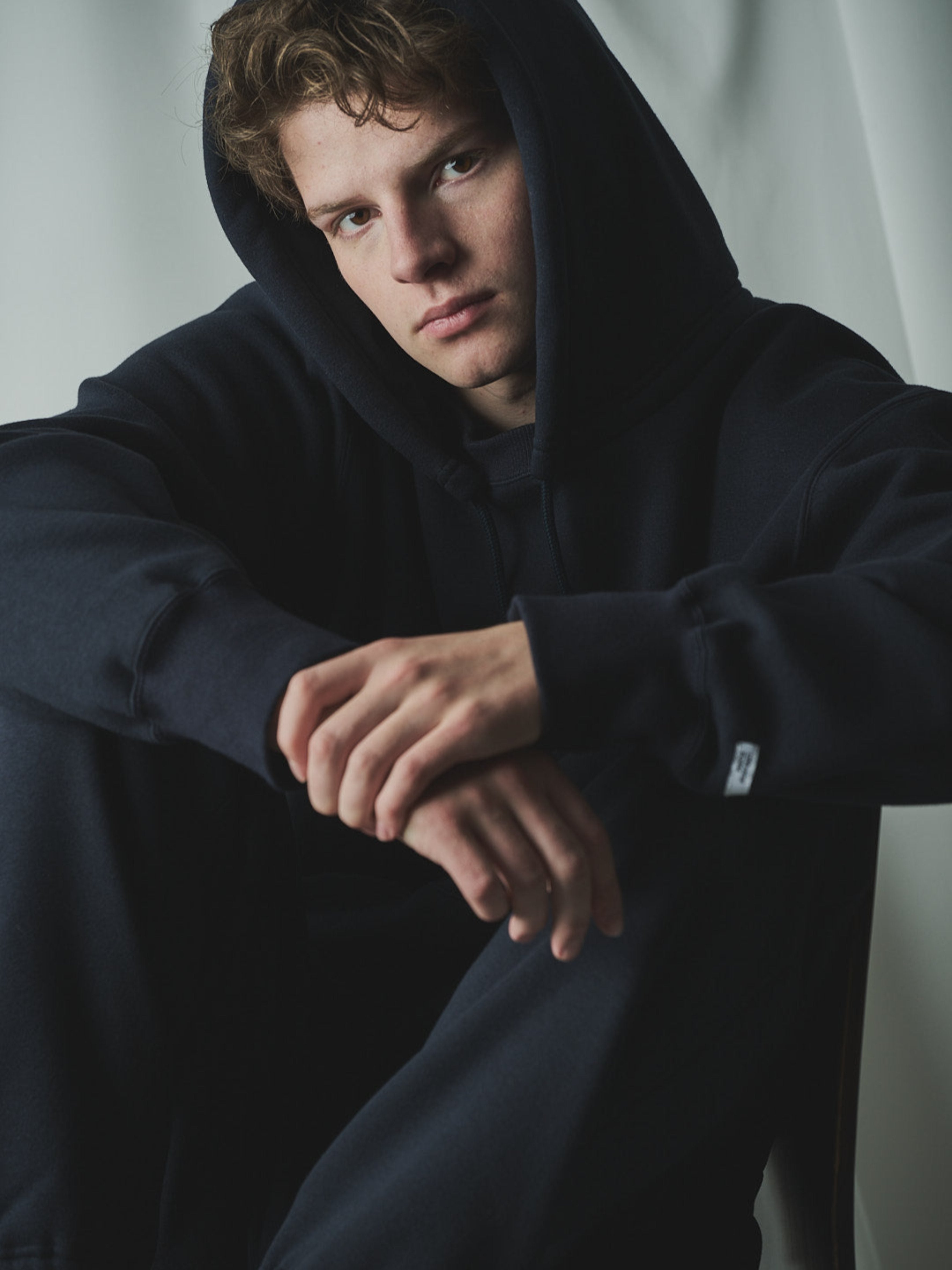 後付けフードパーカーと組み合わせて、2ピーズでモダンな印象でご着用いただきます。